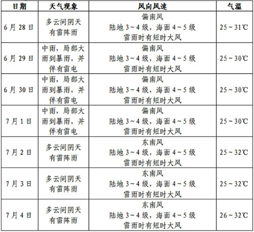 2025年6月28日至7月4日具體天氣預報如下:(來源:北海氣象局)