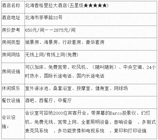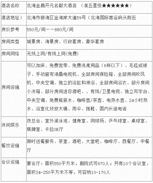 一般到北海開會大家會選擇的酒店有以下幾家: