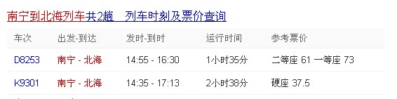 注:南寧到北海汽車15分鐘一趟 汽車票價:73元/人